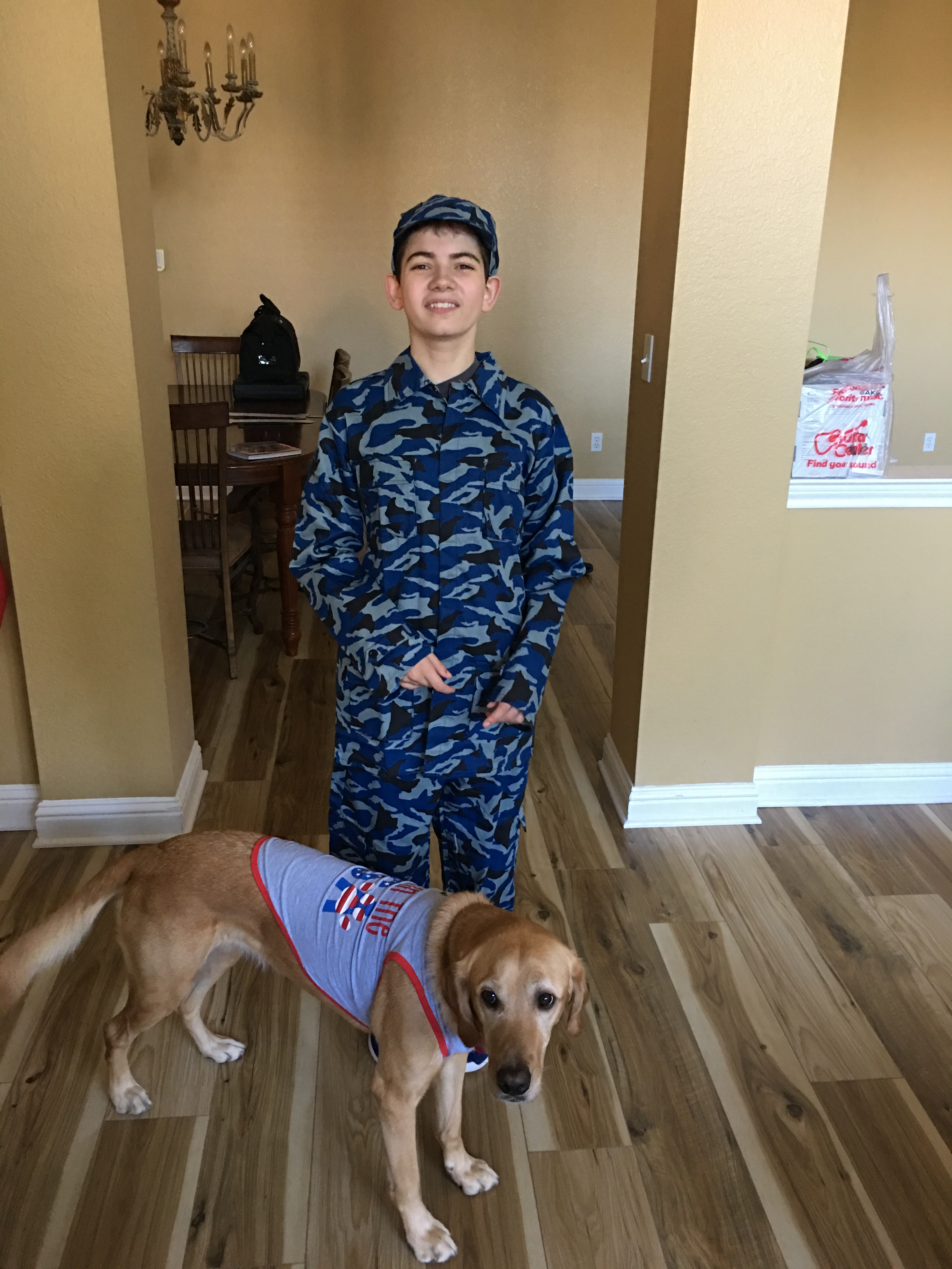 Ryan the NAVY SEAL with his partner Freckles for Halloween.