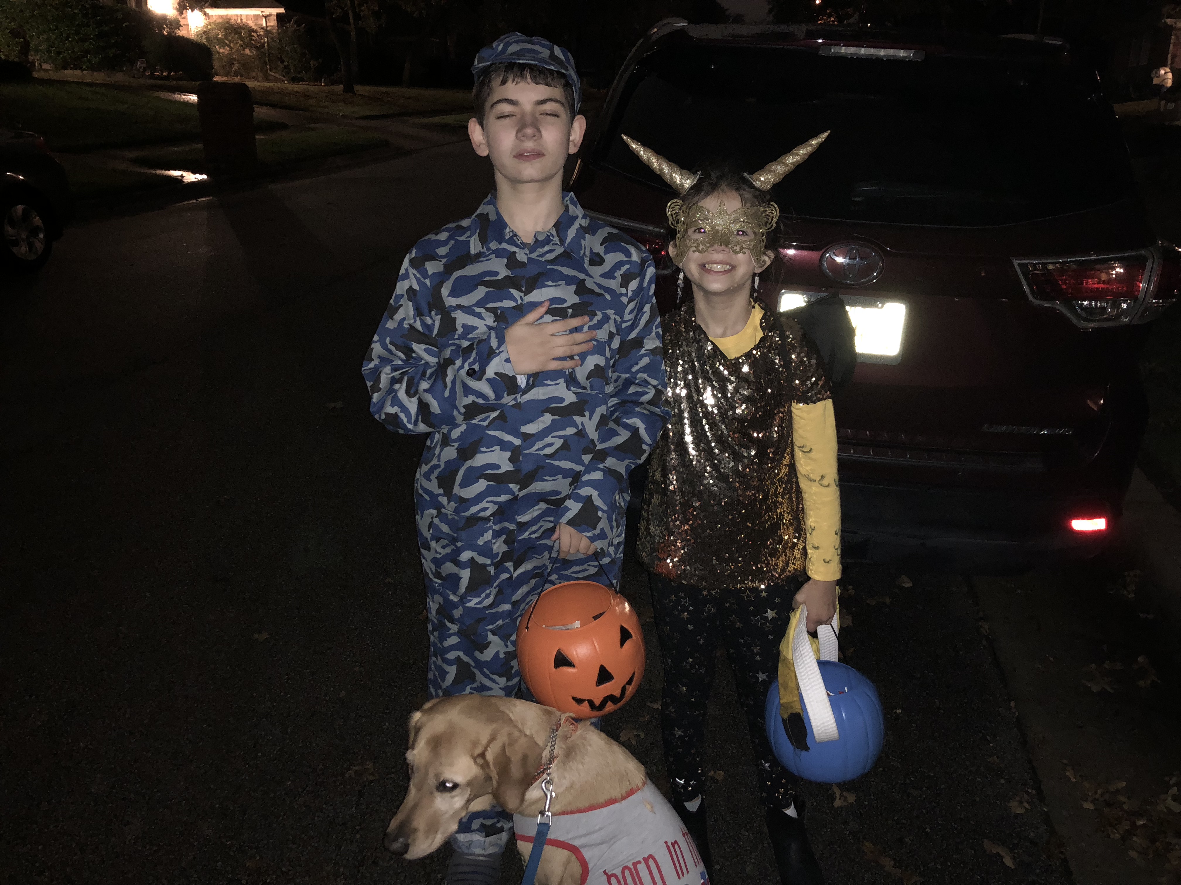 Ryan the NAVY SEAL with his American dog, Freckles, and Grace, a Sandwing Dragon!