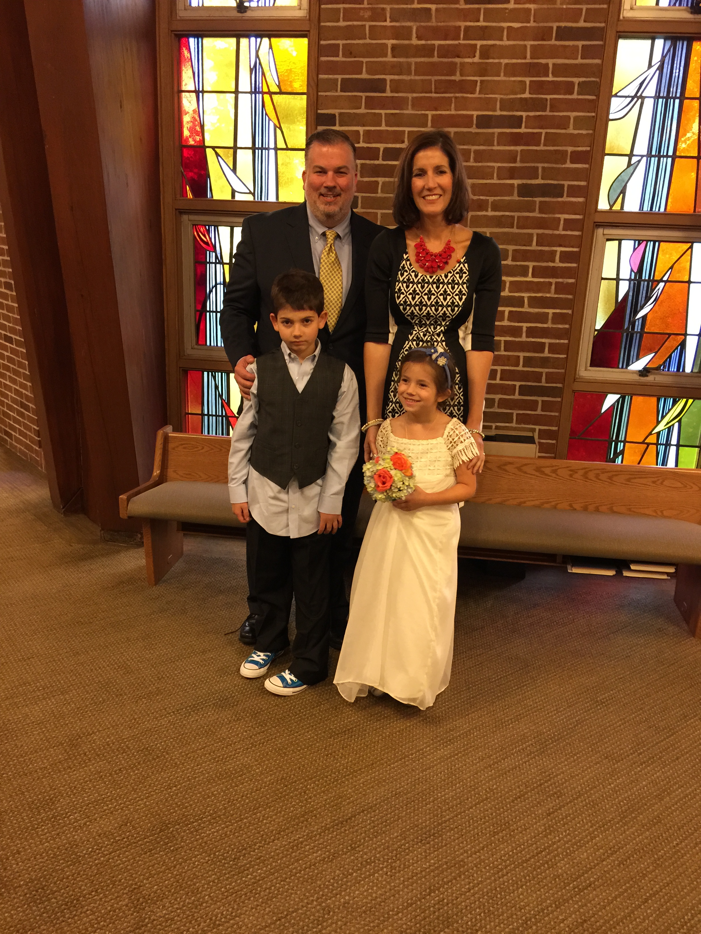 Once Grace and I got dressed (I was a mishmash of a headless horseman shirt with a Cookie Monster headband and spider earrings), Ryan spelled out: ALL OF US LOOK GOOD EXCEPT FOR DAD.